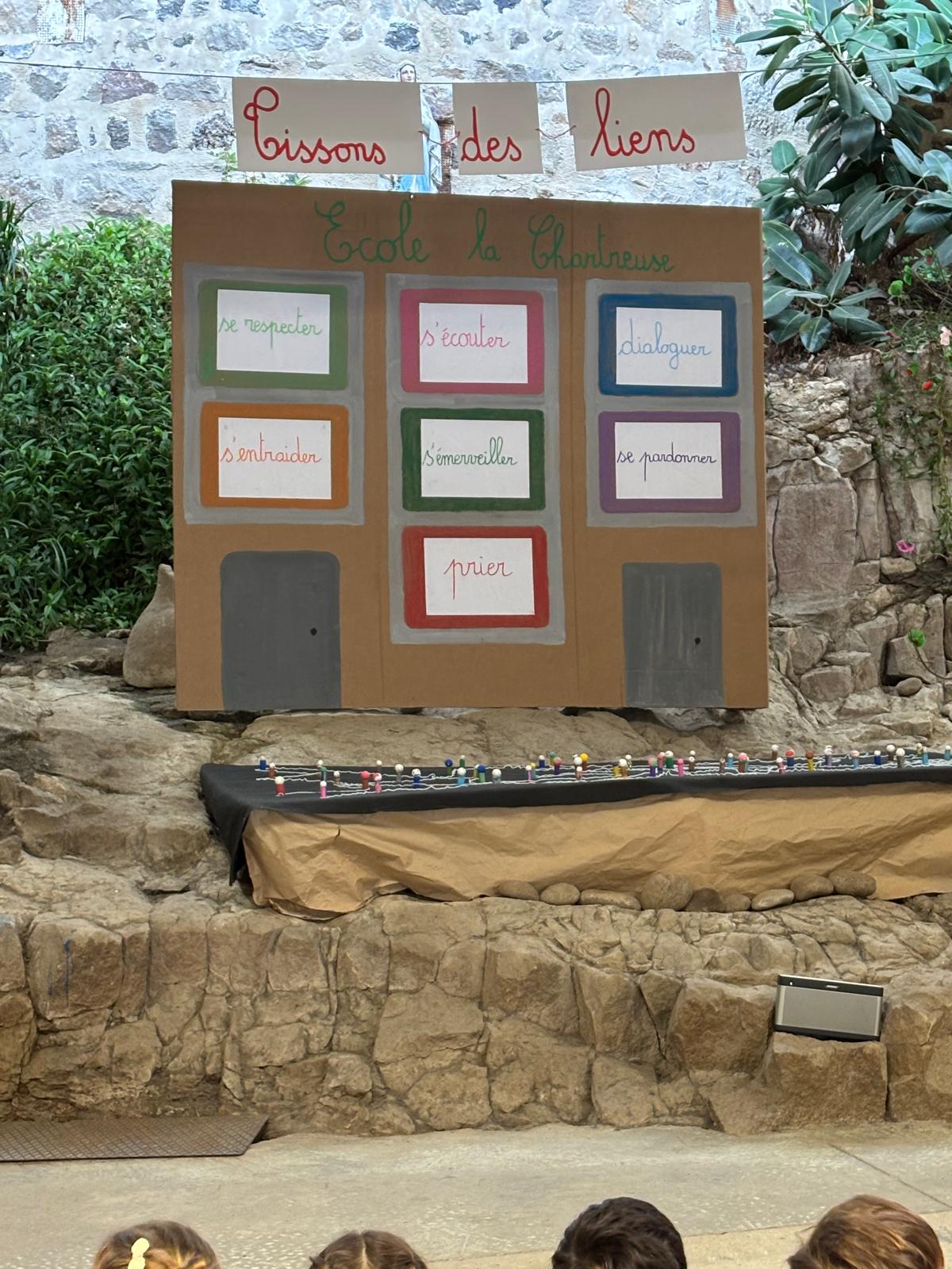 Le roc nous invite à bâtir notre année sur les valeurs telles que l’écoute, l’émerveillement, l’entraide, le respect, le dialogue, le pardon, l’amour, l’ouverture aux autres en lien avec notre projet pédagogique : "tissons des liens."