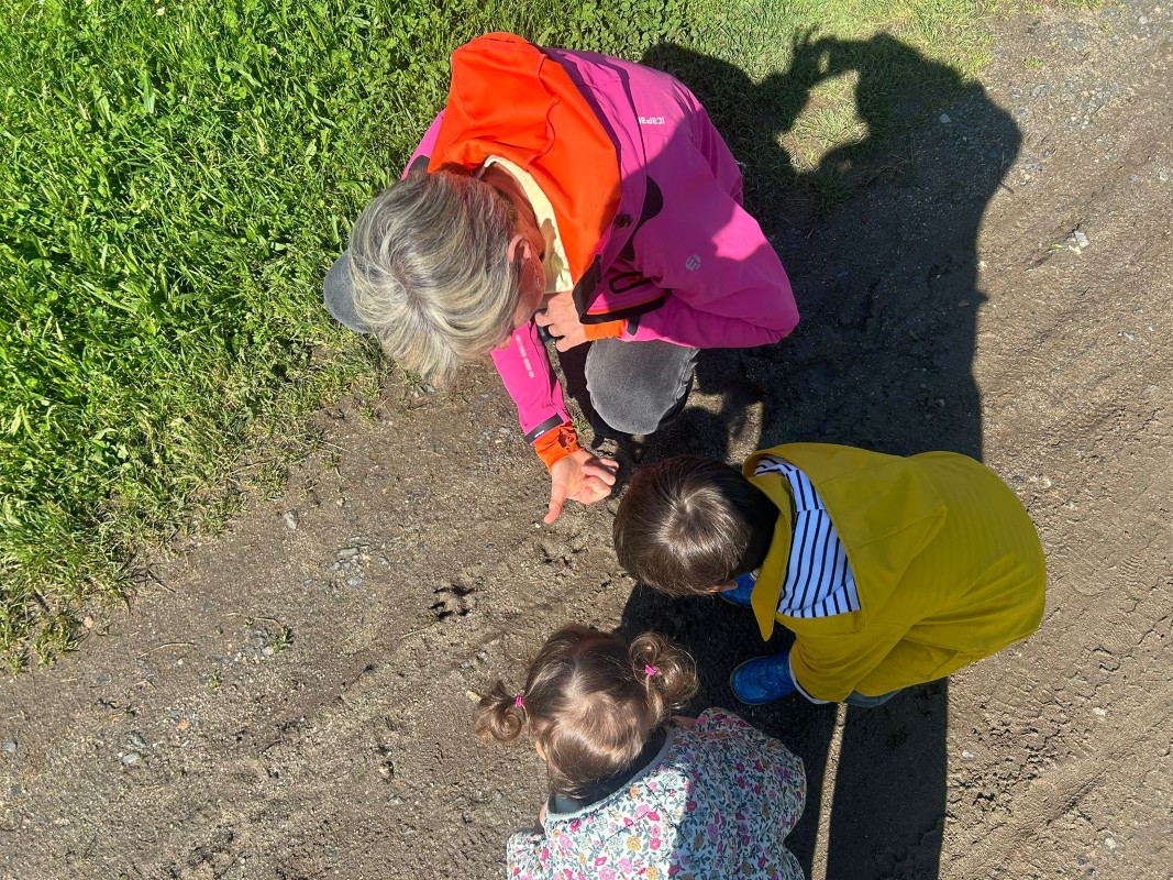 En chemin nous avons observé le déplacement d'un très long ver de terre ainsi que des empreintes d'animaux.