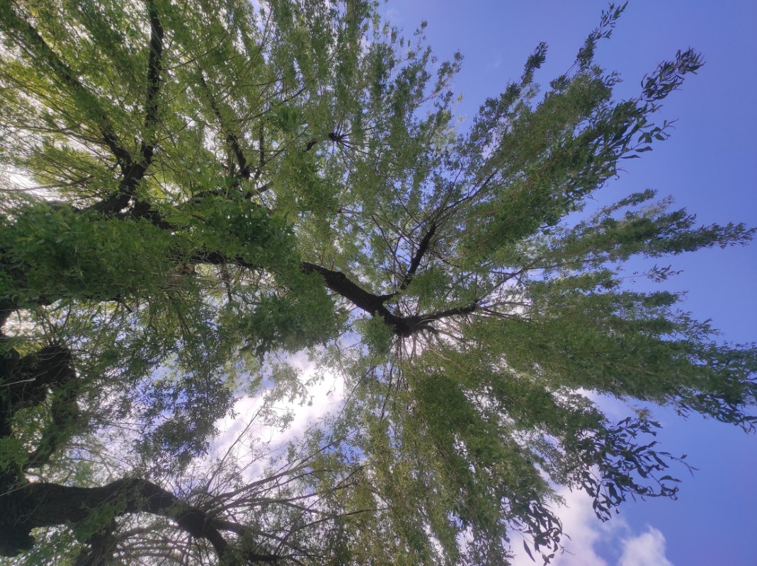 Nous avons admiré le majestueux saule pleureur en s'allongeant sous ses longues branches.