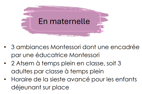 Dans une ambiance chaleureuse et dynamique, l’équipe enseignante accueille les enfants afin de développer leur autonomie et leur envie d’apprendre tout en respectant le rythme de chacun.