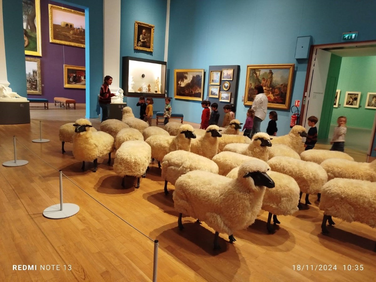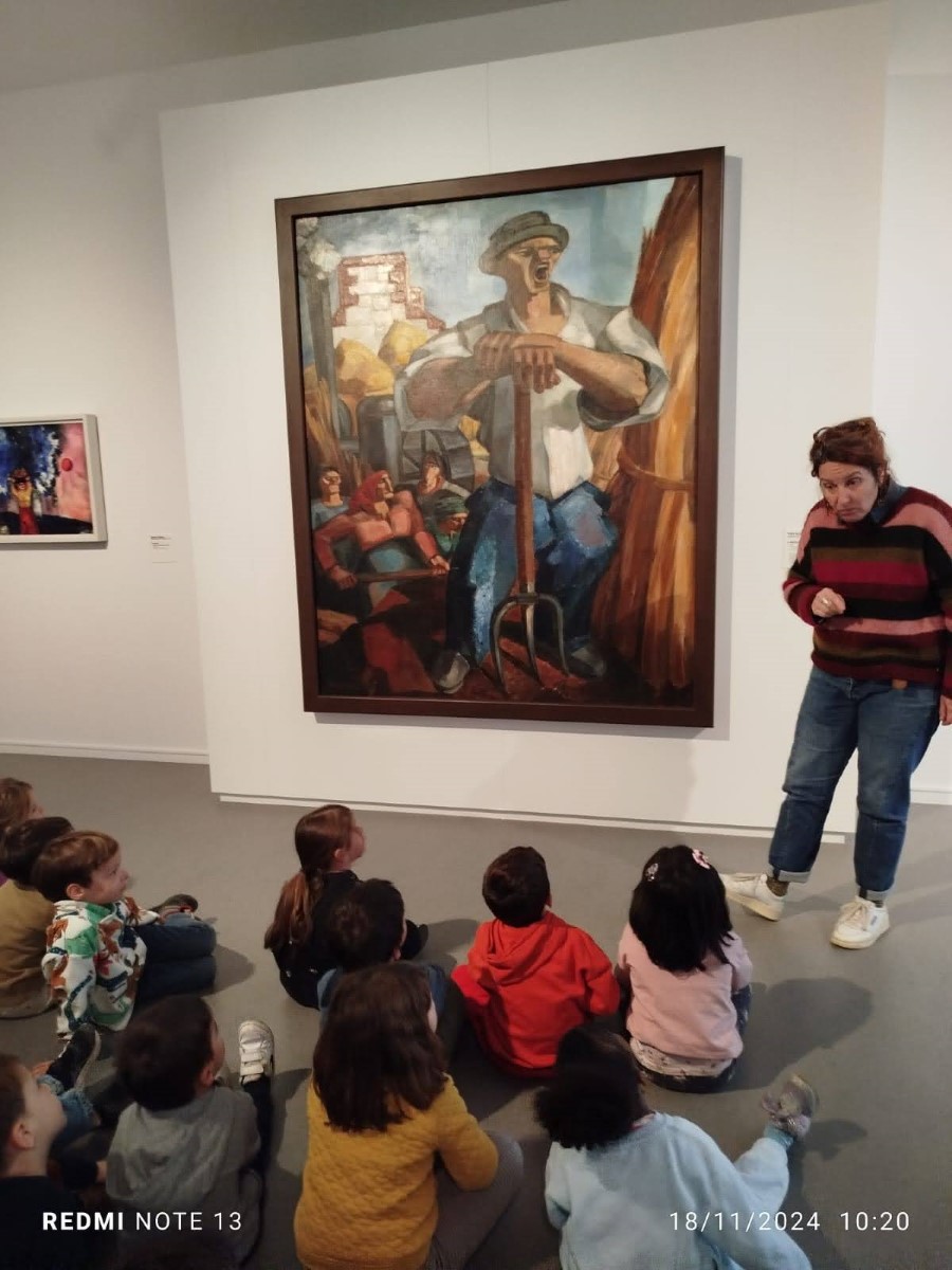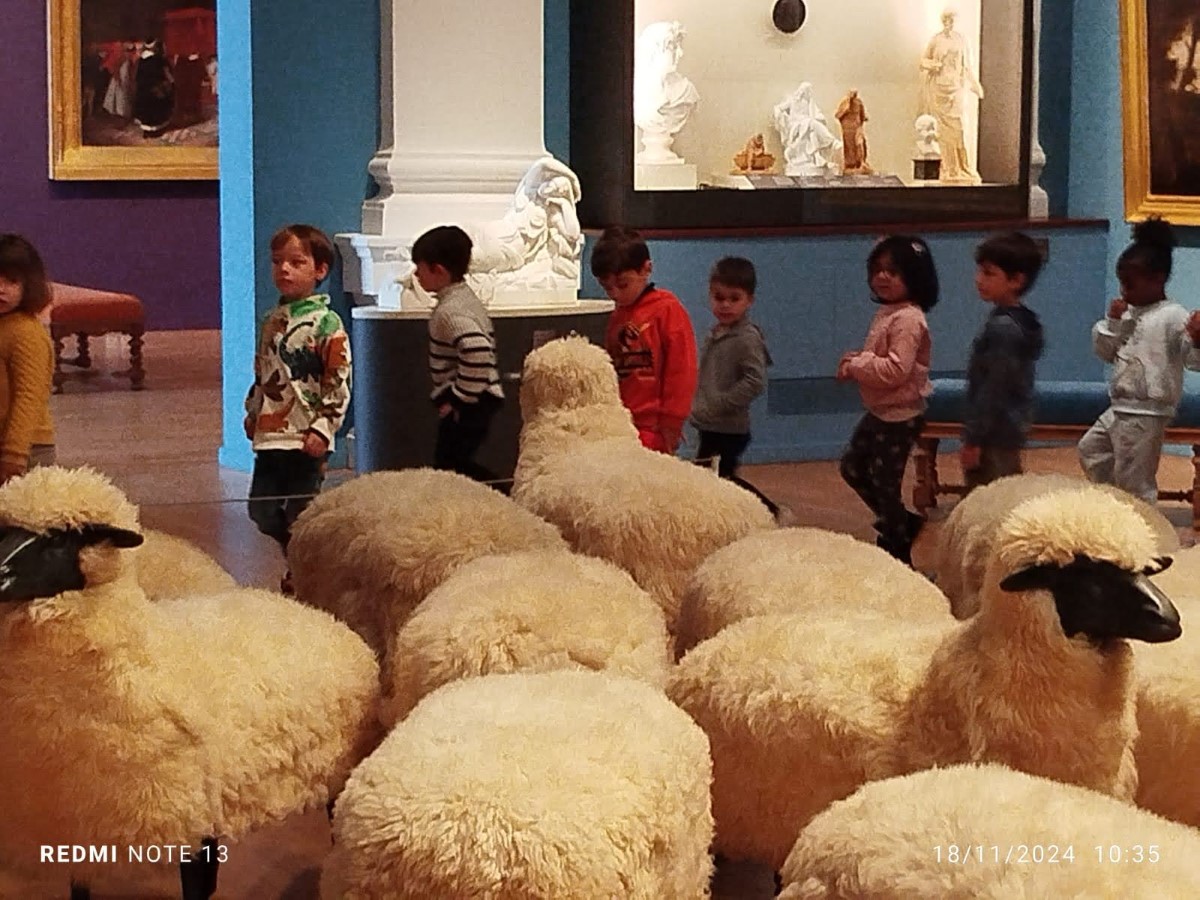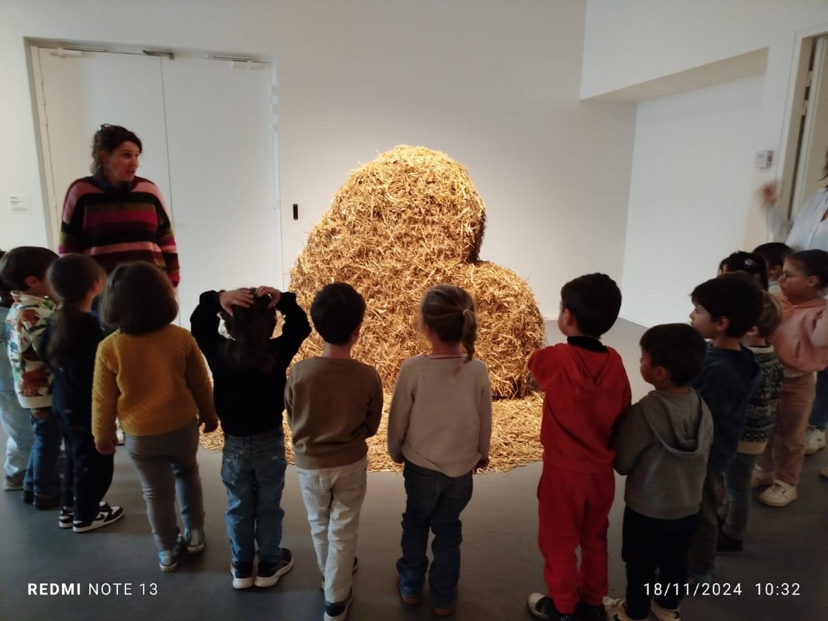 "À travers champs" explore l’univers de la ruralité à travers le regard des peintres et des photographes du XXe siècle: de Georges Braque à Joan Mitchell, en passant par Marc Chagall, Raoul Dufy, Vassily Kandinsky ou Kasimir Malevitch. Notre guide a su captiver les jeunes élèves avec des explications pertinentes sur les couleurs, les formes, les personnages, les techniques utilisées par les artistes. Au cours de la 3ème période, nous travaillerons la thématique de la ruralité en art visuel à la manière de certains artistes que nous avons pu découvrir lors de cette exposition.