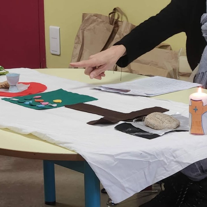 Avec le raconte-tapis, ils ont découvert l’histoire de la Semaine Sainte, puis vécu un temps d’intériorité pour accueillir la lumière de Pâques et se relier à leur poupée « ange-gardien »