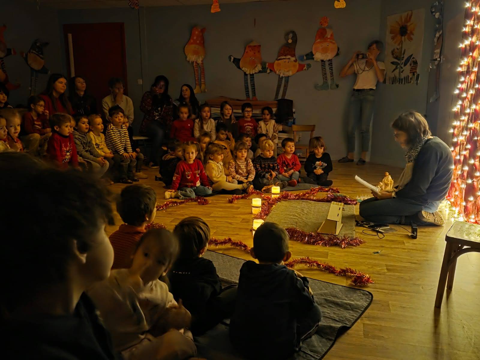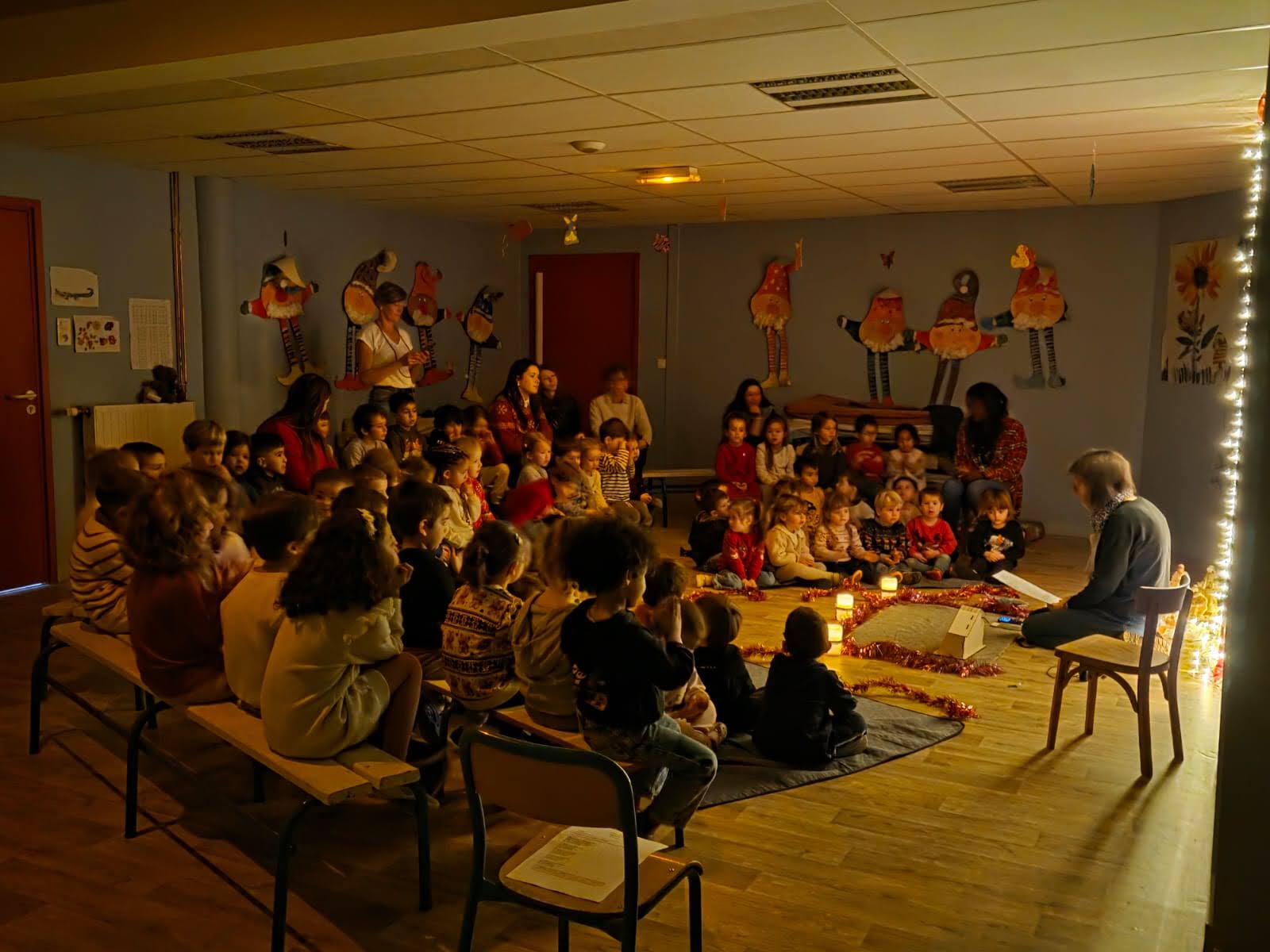 Après une séance de préparation à l'Avent fin novembre, les élèves des 3 classes de maternelle se sont retrouvés, jeudi 18 décembre, pour célébrer la naissance de Jésus. Maîtresse Séverine a conté la nativité en animant et mettant en scène les personnages.