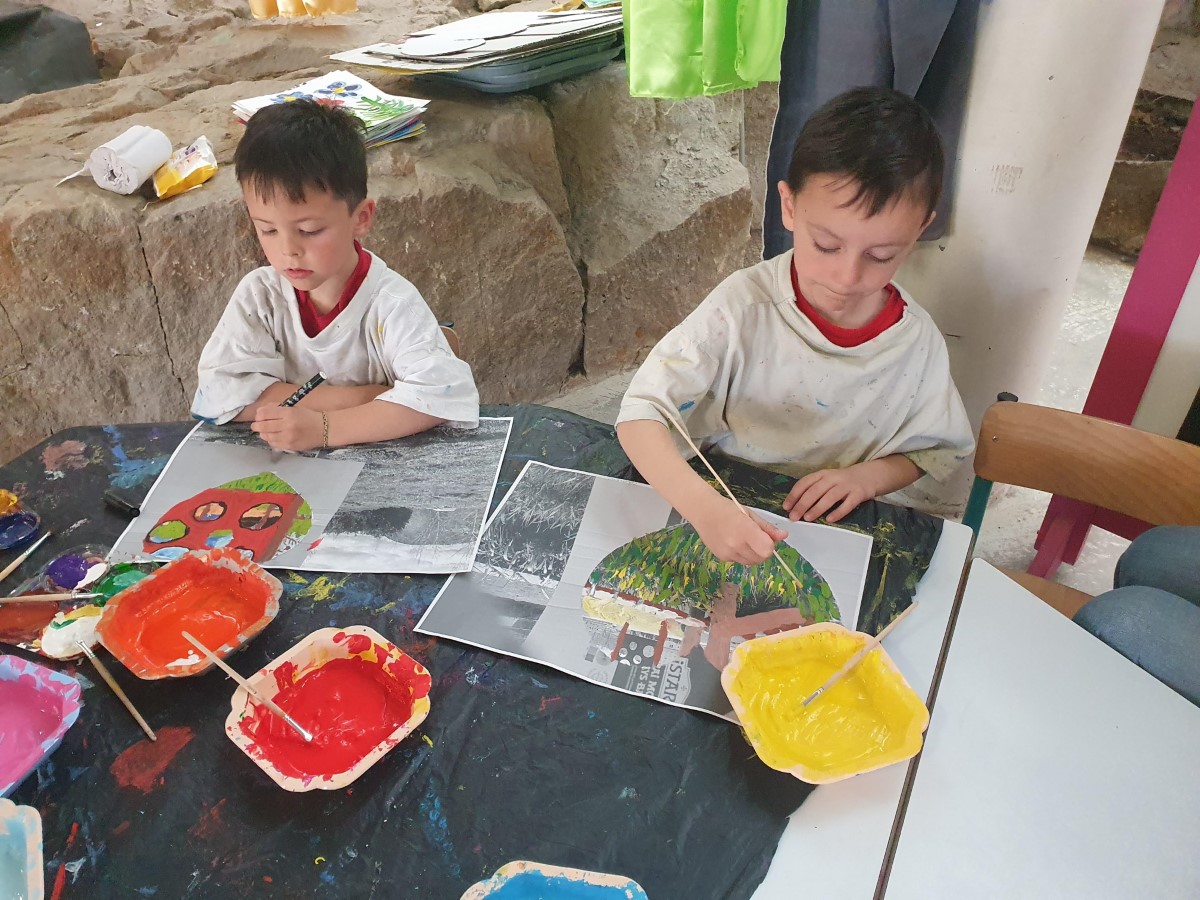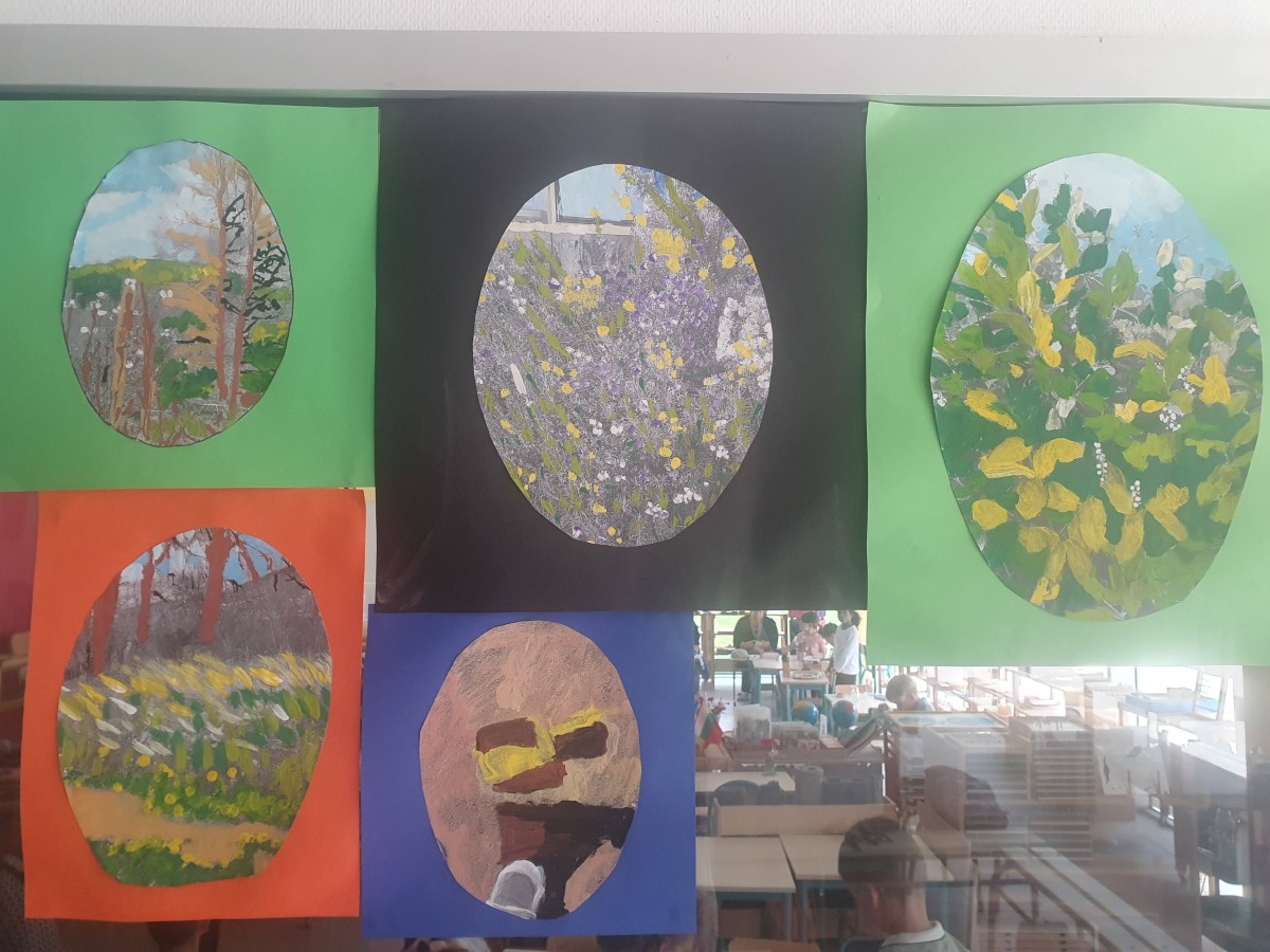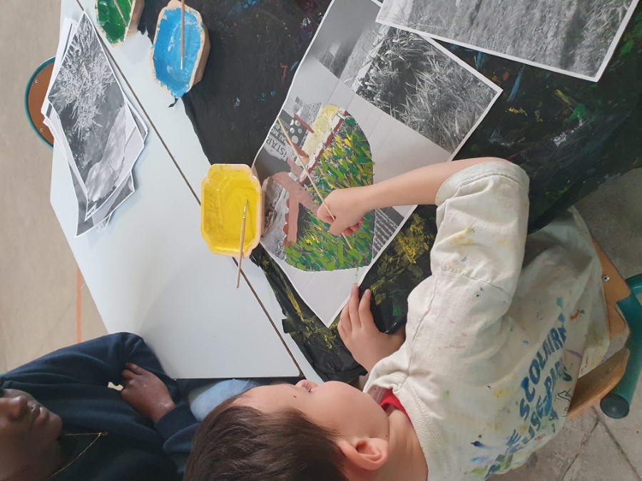 Pour faire suite à cette visite, les enfants sont partis à leur tour à la recherche d'un paysage qui leur plaisaient. Pour ce faire, ils ont capté une partie d'un paysage avec un cadre, puis ont pris la photo de cette partie de paysage qu'ils avaient envie de mettre en avant. Ensuite, ils l'ont mise en valeur en peinture.