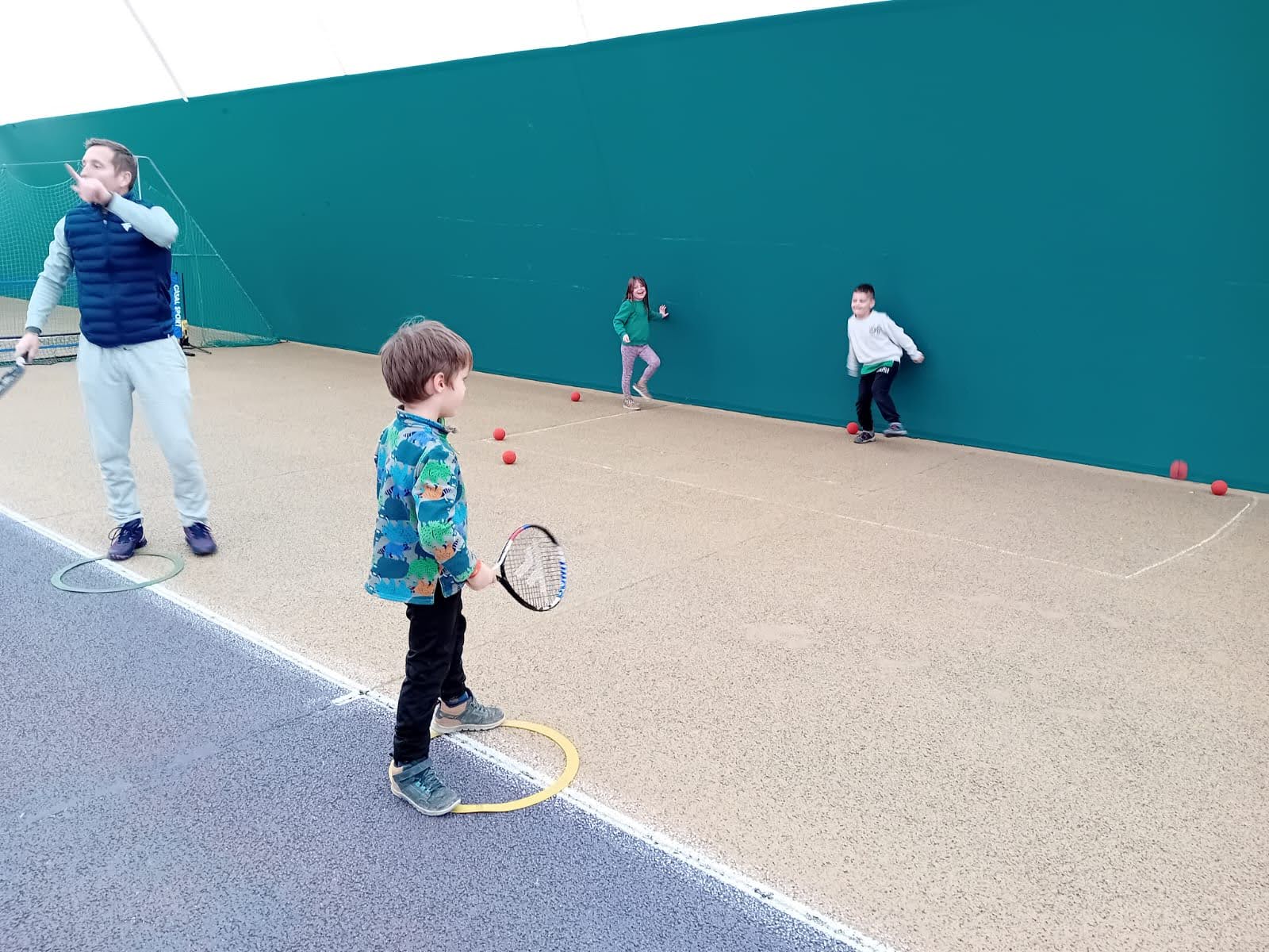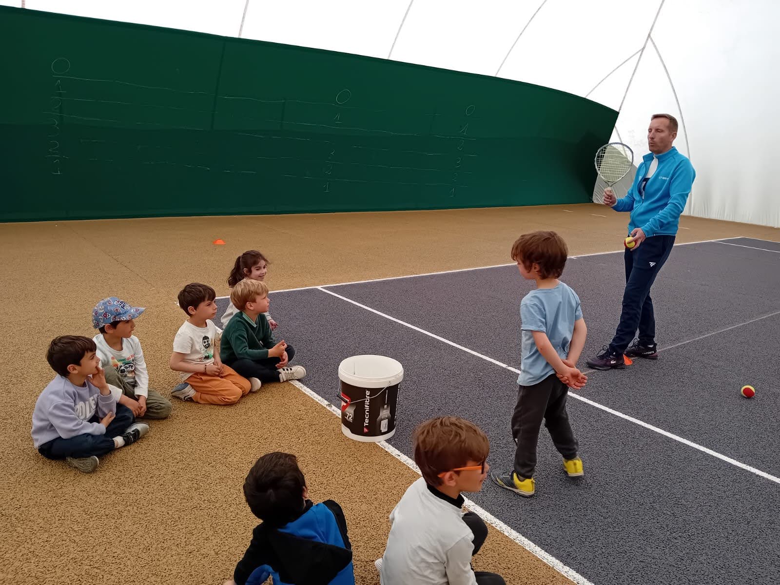 Les élèves de Grande Section ont participé à un cycle « tennis » animé par Rémi, professeur de tennis.