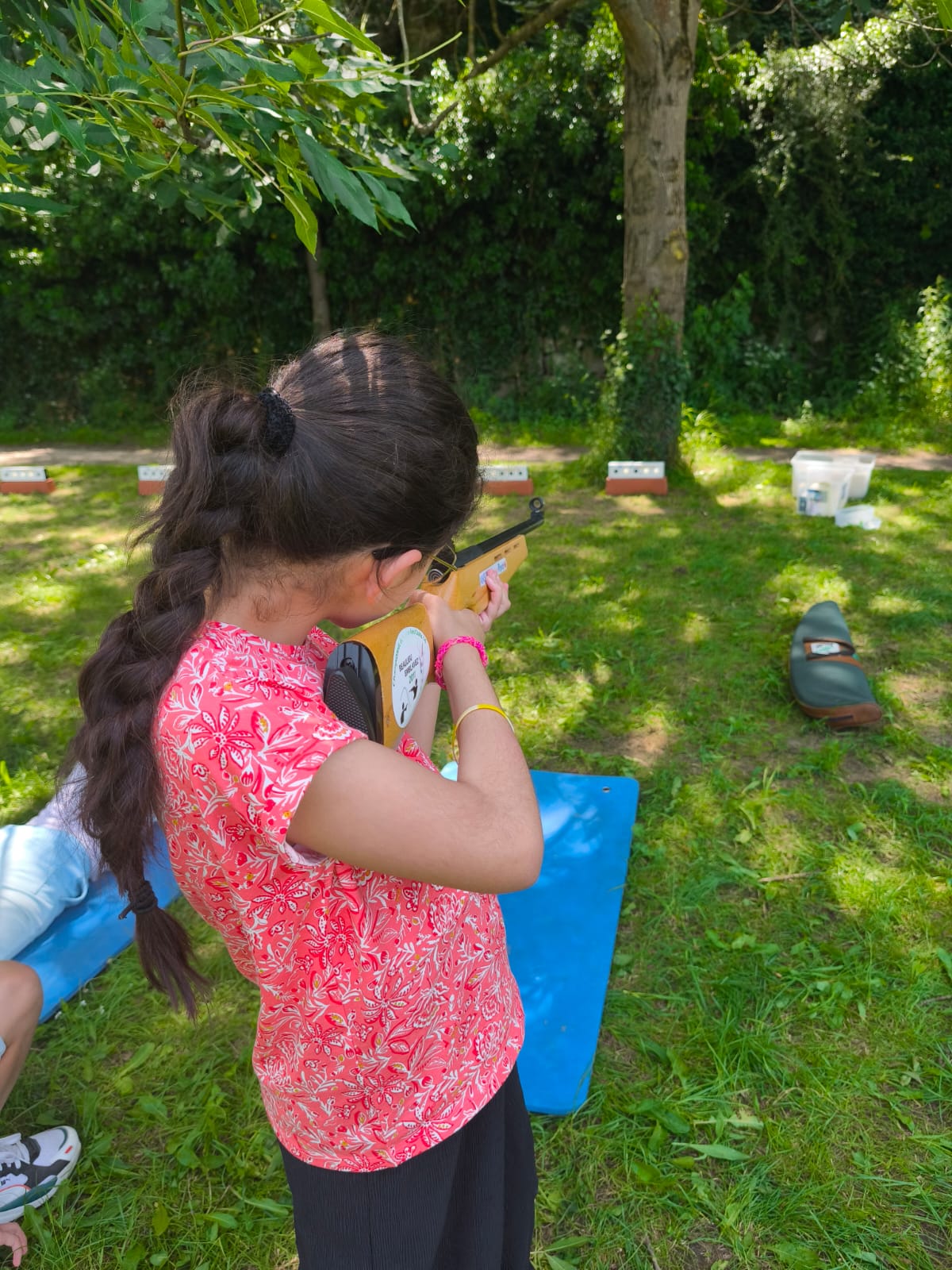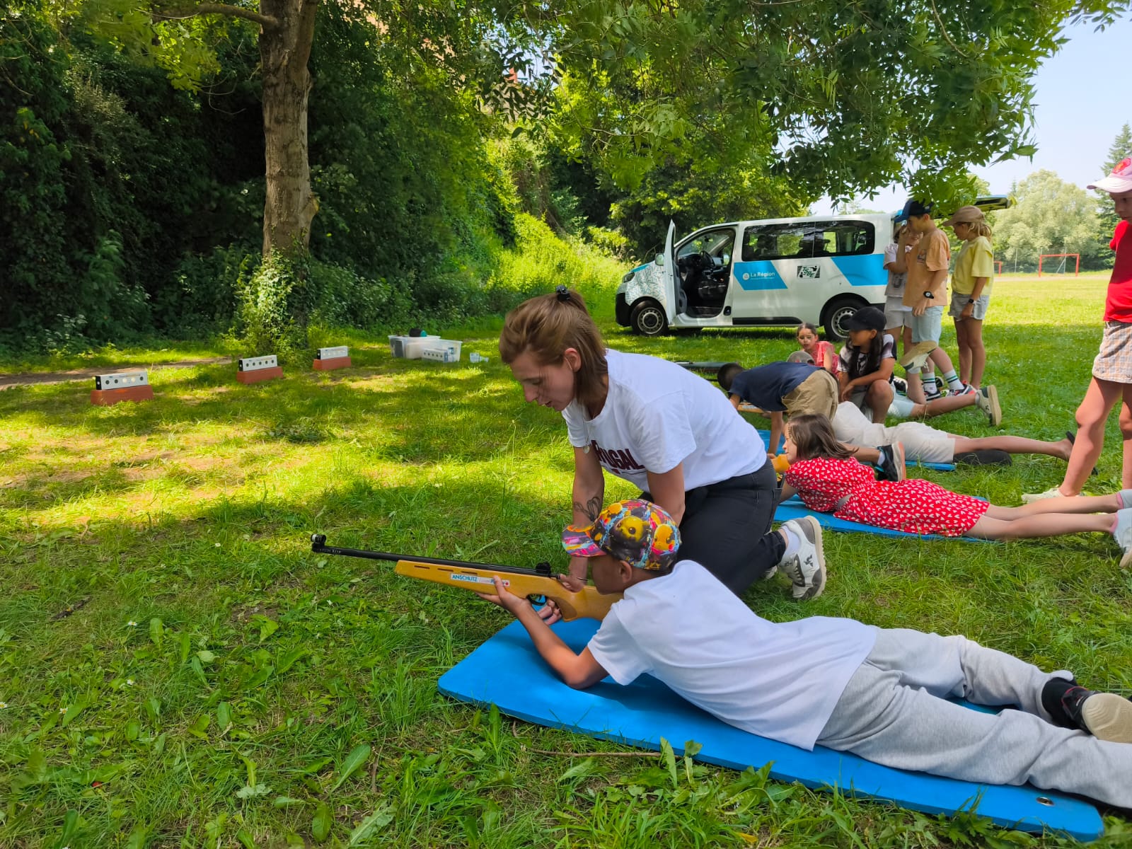 Encadrés par une professionnelle, les enfants ont pu manipuler la carabine en toute sécurité, dans un cadre ludique et sécurisé. Cette activité, mêlant concentration, précision et maîtrise de soi, a suscité un véritable enthousiasme auprès des élèves.