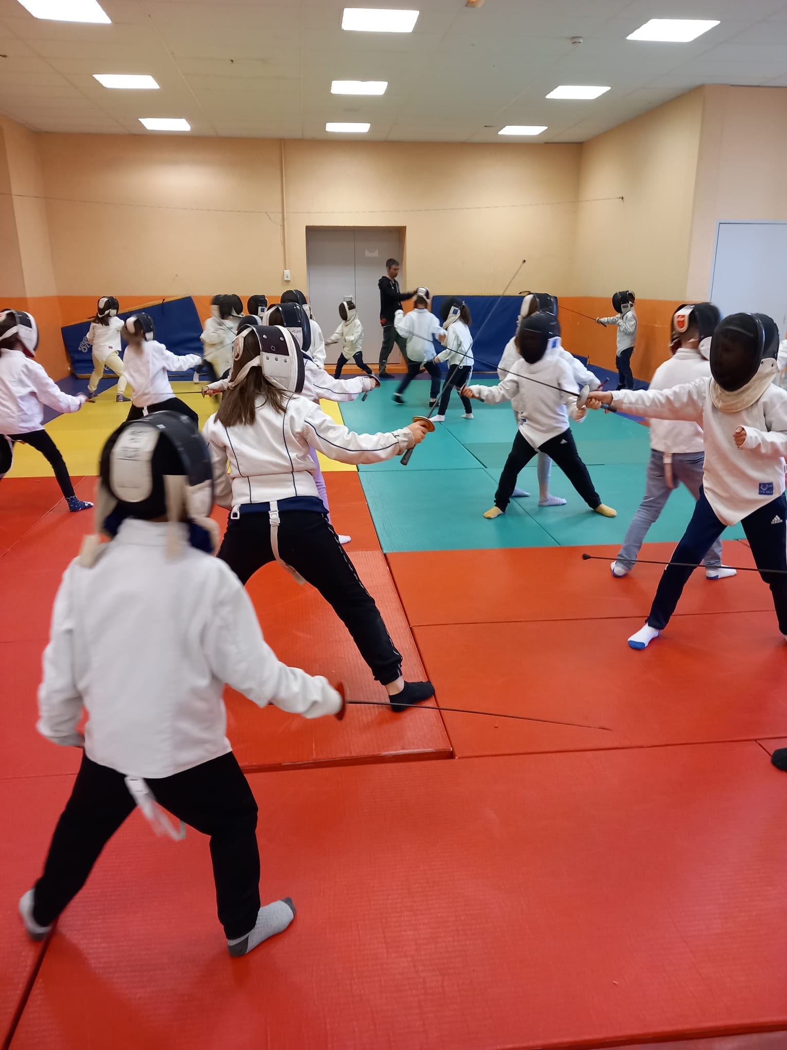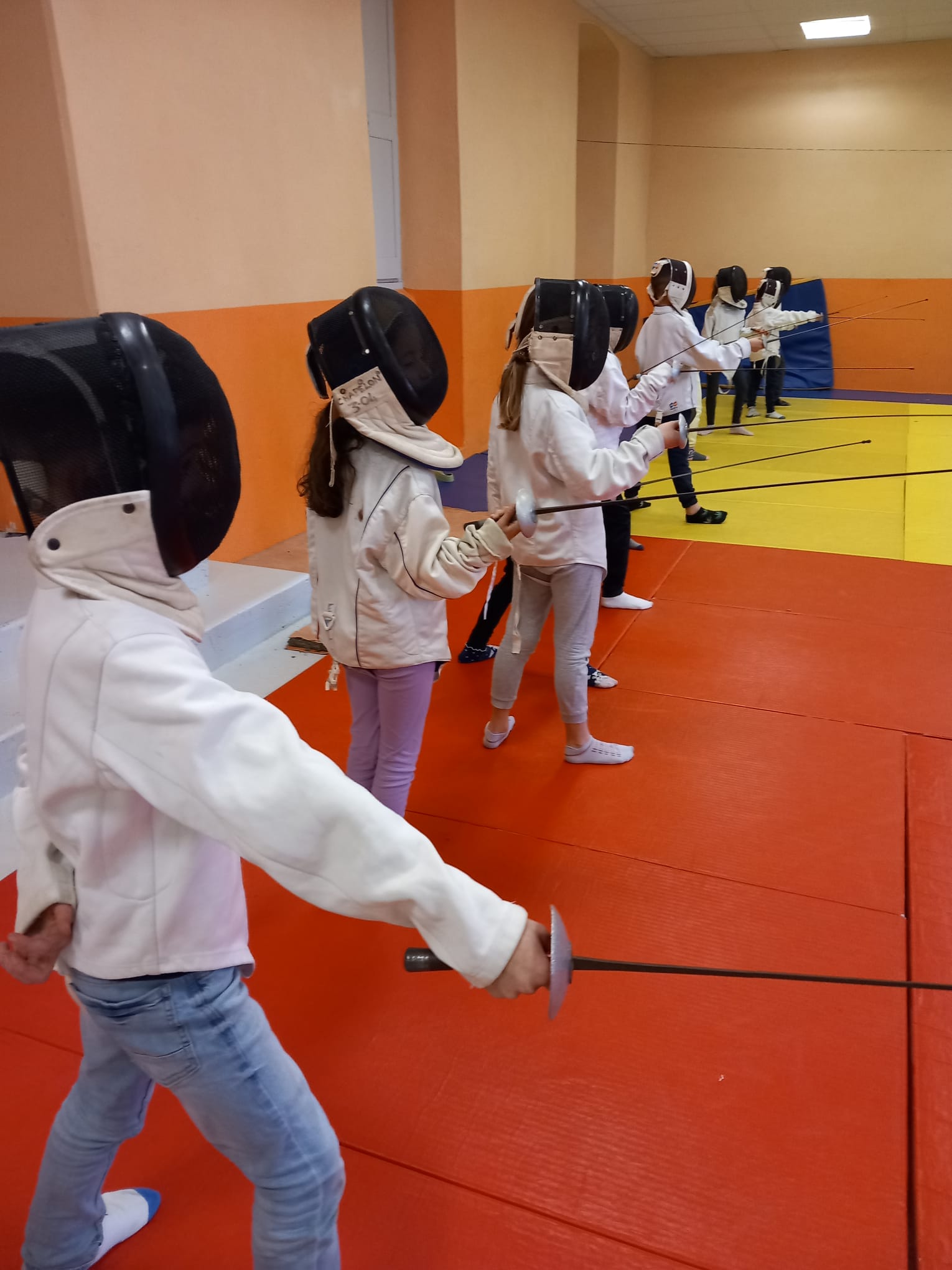 Durant cette période, les classes primaires participent à un cycle d’escrime encadré par Philippe Bianchi du club d’escrime du Puy. Après avoir enfilé la veste, le masque et pris en main le fleuret, les élèves ont pu s’exercer et développer des actions motrices spécifiques à l’escrime : le salut, la garde, les déplacements et la fente. Cette nouvelle discipline est très appréciée des élèves.