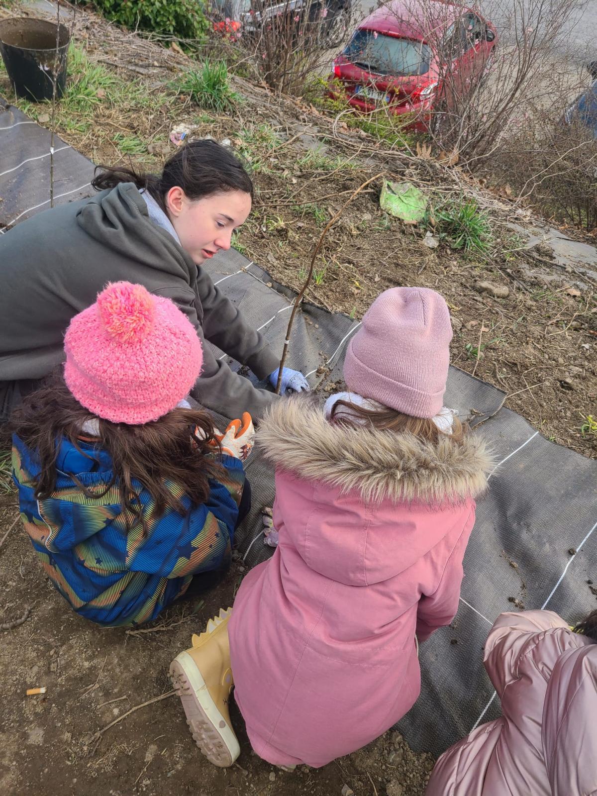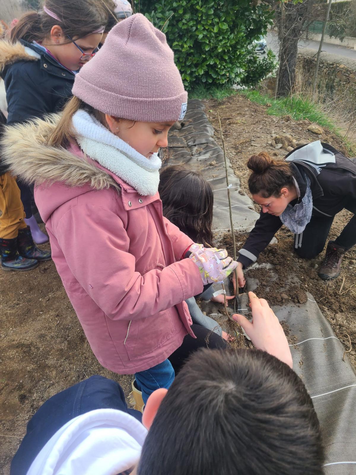 Le projet s'est terminé par la plantation d'une haie sur le parking de l'école. Chaque élève a pu planter son arbre !