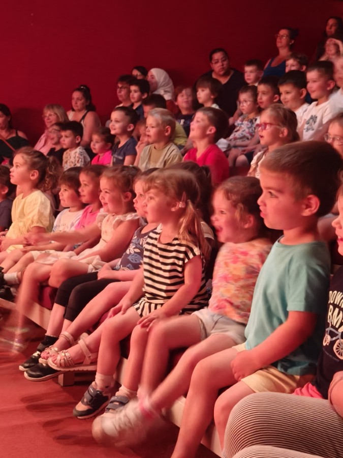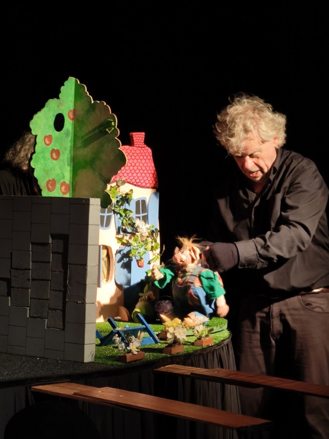 Les élevés de maternelle la pièces de théâtre de marionnettes Le "Mouton sur le toit", où tout oppose Monsieur Rond et Monsieur Carré. Jusqu'au jour où....un nuage trop pressé lâche en passant, un mouton sur le toit de Monsieur Rond. Un conte sur la réconciliation des humains qui a captivé les enfants.