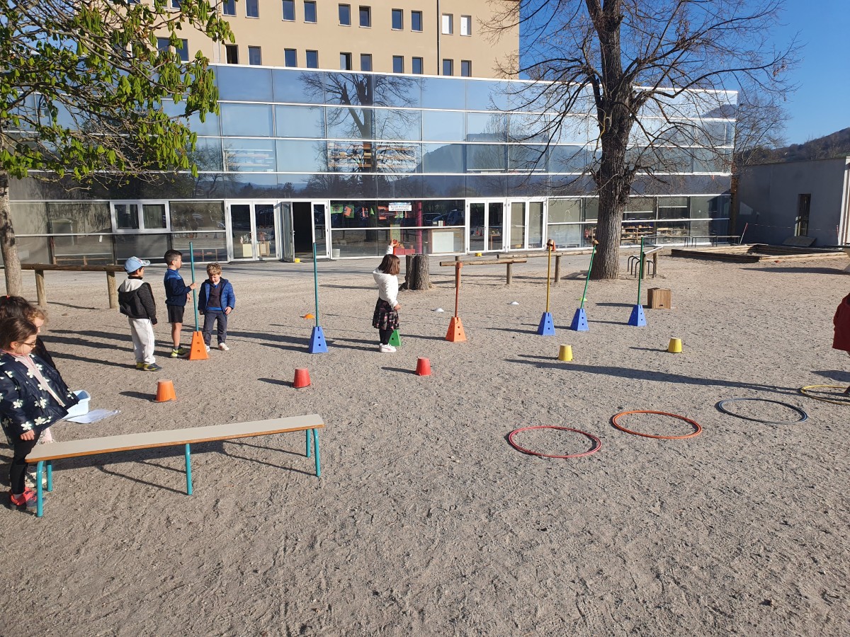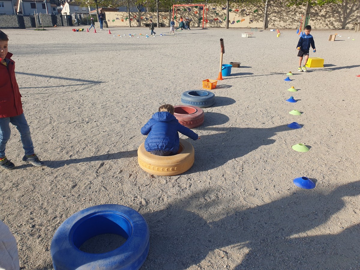 En ce début de printemps, les élèves de maternelle de l'école La Chartreuse ont pu parcourir différents ateliers moteurs pour aider les animaux à sortir de leur hibernation : l'ours qui sort de son grand sommeil va pêcher des saumons, la marmottes ramasse des graines pour nourrir ses petits, le blaireau adore les lombrics et les trouve dans la terre vers les troncs..